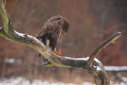 Bullfinch captured on a old tree branch— vibrant bird photograph by Kieran O Mahony