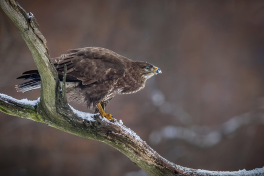 Redpoll perched in snowy environment — winter bird nature photo by Kieran O Mahony